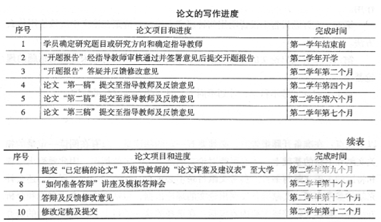 ?。?)論文進度。論文寫作進程表,要按時間順序分階段列出(見表)。
