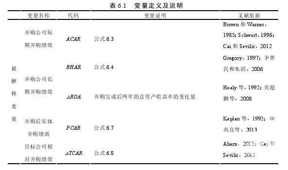 本文的第四章考察了董事聯(lián)結(jié)對并購目標選擇的影響,發(fā)現(xiàn)并購公司與潛在目標公司的董事聯(lián)結(jié)關(guān)系有利于降低并購交易成本,保障并購交易順利開展,與并購公司存在董事聯(lián)結(jié)關(guān)系的潛在目標公司更有可能成為目標公司。第五章考察了董事聯(lián)結(jié)對并購溢價的影響,發(fā)現(xiàn)董事聯(lián)結(jié)有助于降低并購溢價,幫助并購公司以較為合理的價格完成并購交易。并購目標選擇和并購定價是并購交易的兩個重要環(huán)節(jié)。進行恰當?shù)夭①從繕诉x擇是并購創(chuàng)造價值的前提,而提高并購定價的合理性,降低并購溢價支付,是并購創(chuàng)造價值的關(guān)鍵條件。如果并購公司與存在董事聯(lián)結(jié)關(guān)系的公司進行并購,并購績效是否會因此而得到提高?接下來,本章將關(guān)注這一問題。