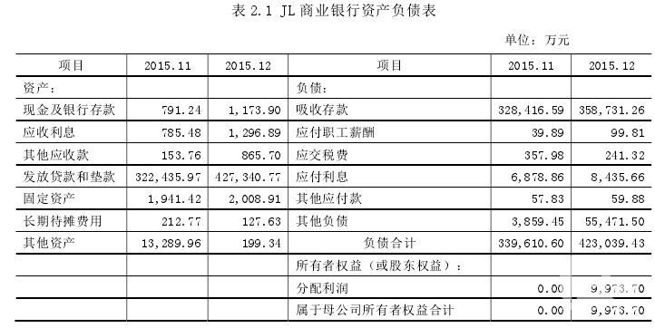 JL 商業(yè)銀行股份有限公司成立于  2007  年  10  月,其前身為 CC 市商業(yè)銀行,是對(duì)省內(nèi)其他多家商業(yè)銀行和城市信用社進(jìn)行合并后而宣告成立的。JL 商業(yè)銀行在短短 7 年時(shí)間內(nèi)迅速壯大,在 JL 省會(huì)設(shè)立 1 個(gè)總部、省內(nèi)其他市州級(jí)設(shè)立 12 個(gè)分部和 2 個(gè)分部級(jí)專營(yíng)機(jī)構(gòu),下設(shè) 362 個(gè)市級(jí)支行及各營(yíng)運(yùn)網(wǎng)點(diǎn),并在 2015 年成功在北京、上海開(kāi)立金融市場(chǎng)部。自 JL 商業(yè)銀行成立至今,堅(jiān)持實(shí)行小微金融、個(gè)人金融、綜合金融服務(wù)、全面風(fēng)險(xiǎn)管理、創(chuàng)新發(fā)展、人才興市和上市的七大戰(zhàn)略。發(fā)展以人為本的個(gè)人金融、植根本地的小微金融、創(chuàng)新高效的同業(yè)金融、深度融合的綜合金融、功能完善的互聯(lián)網(wǎng)金融為策略,嚴(yán)守資產(chǎn)質(zhì)量底線,全力控新降存,壯大資本實(shí)力,強(qiáng)化資本約束,將改革和創(chuàng)新工程結(jié)合,營(yíng)銷(xiāo)與管理工程融入,人才與人心工程分享,以零售牽頭、小微先行、公私聯(lián)動(dòng)、風(fēng)險(xiǎn)管控為實(shí)踐點(diǎn),始終堅(jiān)持以擴(kuò)大股東收益為基本點(diǎn),建立與其規(guī)模相適應(yīng)的完善的內(nèi)部控制制度,嚴(yán)防可能發(fā)生的風(fēng)險(xiǎn),通過(guò)不斷調(diào)整經(jīng)營(yíng)策略,多元化經(jīng)營(yíng)、金融業(yè)務(wù)和金融產(chǎn)品創(chuàng)新來(lái)適應(yīng)迅速變化的金融環(huán)境。實(shí)行嚴(yán)格的財(cái)務(wù)管理制度,采取有效的措施,保證年度財(cái)務(wù)指標(biāo)能夠按計(jì)劃的實(shí)現(xiàn)。現(xiàn)如今,JL 商業(yè)銀行的資產(chǎn)規(guī)模和盈利能力已躋身國(guó)內(nèi)城市商業(yè)銀行前列,省內(nèi)的市場(chǎng)占有率和品牌影響力得到顯著提高,真正實(shí)現(xiàn)規(guī)模經(jīng)營(yíng)。