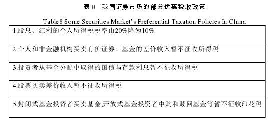 證券市場作為金融市場最前沿的戰(zhàn)場,直接反映了一個城市或地區(qū)金融發(fā)達程度。證券市場的發(fā)展對上海國際金融中心的建設有著十分重要的意義,多層次的證券市場的開發(fā)與完善是上海成為國際金融中心必須邁過的一道坎。 證券市場的蓬勃發(fā)展離不開多層次證券市場體系的建設。要建設多層次資本市場體系,就要增加直接融資的規(guī)模與比重;深化發(fā)展股票市場;加速發(fā)展債券市場,尤其是企業(yè)債市場;努力營造與國際接軌的期貨市場。與其他商品市場不同,除了金融機構(gòu)自身的拼搏,  證券市場的發(fā)展需要政府更多的參與。體制上的約束很久以來一直是制約上海證券市場發(fā)展的最大因素。隨著金融體制改革的開展, 體制與金融環(huán)境己經(jīng)得到很大改善。證券市場法律體系的建立與完善,證券市場基礎設施建設的成效顯著,股權(quán)分置改革也基本完成。在經(jīng)歷了這些制度性改革后,我國的證券市場既有過欣欣向榮的高峰時刻,也有一落千丈的涅磐重生,此間的變化不可謂不大,影響不可謂不深遠。但是,相形之下,證券市場的稅制建設反而成了多年來一直不見起色的領(lǐng)域。時至今日,證券市場依然缺少一套完整有效的稅收體系。因此,政府對于證券市場的調(diào)控,發(fā)展與風險防范始終顯得有心無力。 由于有價證券作為虛擬經(jīng)濟的波動性,不確定性與易受心理預期影響等特質(zhì),稅收政策對證券市場有著很大的影響力。我國證券市場規(guī)模小,  投機氛圍重, 且投資者專業(yè)素質(zhì)不高,所以稅收政策的任何變動都可能給市場帶來很大的沖擊。因此,證券市場稅制改革投鼠忌器,舉步維艱。但是,要想讓上海成為國際金融中心,證券市場稅制改革就是不可回避的問題。本章將對我國證券市場稅制進行探索,以求能為建立符合我國國情的證券市場稅制體系提出建設性意見。下面先簡單敘述一下證券市場的稅制體系。 證券市場的稅收主要分為對證券交易環(huán)節(jié)征稅和對證券交易所得征稅。對證券交易環(huán)節(jié)征稅一般采用證券交易稅與印花稅的形式。證券交易稅一律按稅率全額課征。證券交易所得稅只有在取得盈利時才征收,  且稅率要普遍高于證券交易稅。差別性的證券交易稅政策,可以區(qū)別對待不同交易行為, 從而起到調(diào)節(jié)證券市場結(jié)構(gòu)的作用。