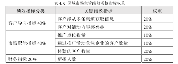 本文重新設(shè)計(jì)了 X 青少兒英語培訓(xùn)公司市場(chǎng)部績(jī)效指標(biāo),旨在改善目前市場(chǎng)部面臨的主要問題,通過績(jī)效指標(biāo)的更變,從企業(yè)內(nèi)部由上到下,改變現(xiàn)有經(jīng)營和管理思路,避免教育企業(yè)在銷售導(dǎo)向的道路上越走越遠(yuǎn),從而背離教育本質(zhì)和市場(chǎng)營銷本質(zhì)。進(jìn)一步通過績(jī)效指導(dǎo)市場(chǎng)人員的日常市場(chǎng)行為,傳遞相應(yīng)的價(jià)值觀理念,開始從根本上重視客戶價(jià)值。該績(jī)效指標(biāo)在設(shè)計(jì)理念上遵循現(xiàn)有績(jī)效管理論的研究成果,結(jié)合 X 青少兒英語培訓(xùn)公司市場(chǎng)部的實(shí)際情況,在原有的績(jī)效指標(biāo)基礎(chǔ)上加入了客戶導(dǎo)向指標(biāo)類型,并對(duì)原有的指標(biāo)進(jìn)行重新梳理和闡述,使得原有的部分指標(biāo)推導(dǎo)邏輯符合整體的績(jī)效考核方式的設(shè)計(jì)理念。并且針對(duì)“客戶滿意度”這一客戶導(dǎo)向指標(biāo),進(jìn)行了定量設(shè)計(jì),使得“客戶滿意度”可以被量化,數(shù)據(jù)化,從而提升新的績(jī)效考核指標(biāo)可以被實(shí)施,降低了實(shí)施難度。新的績(jī)效考核方式并沒有完全取消財(cái)務(wù)指標(biāo),而是降低了財(cái)務(wù)指標(biāo)的權(quán)重比,這么做的目的是讓市場(chǎng)人員的工作要與公司的運(yùn)營狀況掛鉤,不能完全脫離企業(yè)的運(yùn)營情況而存在。本文探索出的新績(jī)效指標(biāo)方案還僅停留在理論階段,還需要實(shí)際應(yīng)用來檢驗(yàn)其效果,是否能夠真正帶動(dòng)市場(chǎng)部的改善。此外由于績(jī)效考核更新之后的效果具有較長的滯后性,因此短期內(nèi)可能無法體現(xiàn)出期望的效果。另外新的績(jī)效考核方案對(duì)于市場(chǎng)經(jīng)理的要求較高,需要具有市場(chǎng)營銷知識(shí)體系,并認(rèn)可市場(chǎng)營銷理念的市場(chǎng)經(jīng)理來推動(dòng)???jī)效考核指標(biāo)的變動(dòng)不同于部門結(jié)構(gòu)的變動(dòng),新技術(shù)的應(yīng)用,這是從企業(yè)管理理念和方向的根本變動(dòng),因此需要企業(yè)從管理層到一線員工,由上到下的逐級(jí)推進(jìn),這才能使得績(jī)效考核的方式能夠真正得到貫徹和實(shí)施。本文設(shè)計(jì)的市場(chǎng)部績(jī)效考核指標(biāo),對(duì)于目前市場(chǎng)中現(xiàn)有的中小型教育培訓(xùn)企業(yè)來說,實(shí)施難度較大,原因在于中小型企業(yè)在最初的發(fā)展目標(biāo)是獲取一定的學(xué)員基數(shù),保證校區(qū)能夠得到持續(xù)運(yùn)營,但是對(duì)于已經(jīng)發(fā)展一段時(shí)間,以及中大型的教育培訓(xùn)企業(yè)而言,則具有一定的借鑒意義,采用本文提出的新的績(jī)效考核方案,逐步對(duì)市場(chǎng)部員工進(jìn)行培訓(xùn),進(jìn)而讓教育培訓(xùn)行業(yè)的市場(chǎng)行為更規(guī)范,更精細(xì),讓教育培訓(xùn)回歸教育的本質(zhì),讓教育培訓(xùn)的市場(chǎng)工作更具創(chuàng)意,讓更多的人開始認(rèn)可教育培訓(xùn)的市場(chǎng)行為。