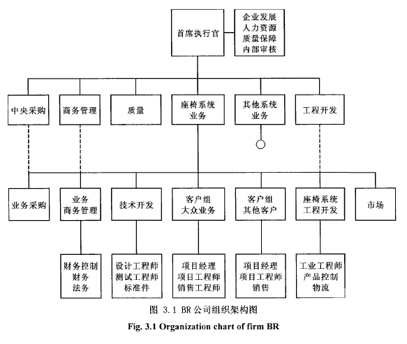 公司由首席執(zhí)行官,業(yè)務(wù)單元副總/中央職能部門副總,客戶組總監(jiān)/部門經(jīng)理和職員四個(gè)管理層次構(gòu)成。其中業(yè)務(wù)單元和中央職能部門屬于平行關(guān)系,業(yè)務(wù)單元下設(shè)有客戶組,客戶組的組織形式為項(xiàng)目團(tuán)隊(duì)形式,屬于弱矩陣架構(gòu)。BR公司組織架構(gòu)如圖3.1所示:?
