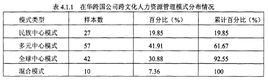 4.1在華跨國(guó)公司跨文化人力資源管理模式的類型和分布情況