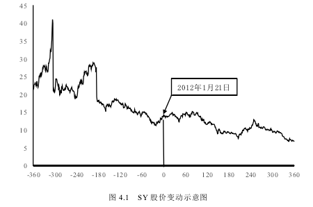 備受大家格外關(guān)注的SY公司并購(gòu)DX是我國(guó)金額較大的海外并購(gòu)案例。一直以來,在海外并購(gòu)案例中,成功的案例非常少,尤其這種小魚要成功吞下大魚的案例就更少。SY 與 DX 之間的并購(gòu)交易是否免除了失敗的鐐銬,無法過早的下結(jié)論。但是面對(duì)縱橫交錯(cuò)的棘手問題如管理、資金、市場(chǎng)等難題,對(duì)于急于爭(zhēng)奪世界市場(chǎng)的 SY 公司而言,一切才剛剛開始且任道而重遠(yuǎn)。下面,我們先采用事件分析法粗看下資本市場(chǎng)的反應(yīng)。首先有必要回顧一下 SY 公司股票價(jià)格在發(fā)生并購(gòu)前后各一年的大體走勢(shì)。以 2012 年 1 月 21 日為并購(gòu)當(dāng)天,即為第 0 天,明確地描述了在并購(gòu)前后一年 SY公司股票價(jià)格的變動(dòng)趨勢(shì),其中并購(gòu)宣布日第-180 天左右 SY 公司股票價(jià)格達(dá)到歷史巔峰。2011 年底,SY 將宣布并購(gòu) DX 的第-40 天左右,SY 公司股價(jià)開始大幅下降,并且出現(xiàn)連續(xù)下跌后略微反彈.