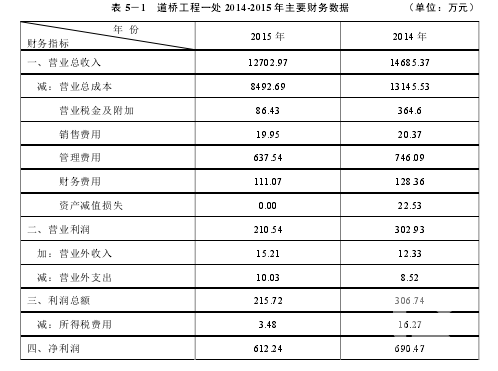 EVA 的計(jì)算旨在基于企業(yè)投入的資本存在成本的這一假設(shè)前提下,更加準(zhǔn)確的反應(yīng)一個(gè)企業(yè)的經(jīng)營(yíng)、財(cái)務(wù)狀況。本章所使用的該公司報(bào)表數(shù)據(jù)來(lái)源于中原建設(shè)工程公司的內(nèi)部有關(guān)資料,下面以中原建設(shè)工程公司下屬二級(jí)單位道橋工程一處為例進(jìn)行 EVA 的有關(guān)計(jì)算,該單位 2014-2015 年財(cái)務(wù)數(shù)據(jù)資料如表 5-1 所示:債務(wù)資本成本:因中原建設(shè)工程公司隸屬中石化石油工程建設(shè)公司,中石化全面實(shí)行資金集中管理,禁止下屬單位進(jìn)行外部籌融資,僅允許通過(guò)集團(tuán)內(nèi)部申請(qǐng)貸款,故本文借款利息率采用中石化內(nèi)部貸款利率 4.8%來(lái)研究。權(quán)益資本成本:采用風(fēng)險(xiǎn)溢價(jià)定價(jià)模型。我國(guó)的市場(chǎng)風(fēng)險(xiǎn)溢價(jià)大約為 3%-5%,本文選擇 4%作為風(fēng)險(xiǎn)溢價(jià),這個(gè)數(shù)值的選取不會(huì)影響 EVA 指標(biāo)的反映能力。根據(jù)資本資產(chǎn)定價(jià)模型(CAPM)本文根據(jù)中原建設(shè)工程公司道橋工程一處 2014-2015 年財(cái)務(wù)數(shù)據(jù)為例,依照此方法,分別對(duì)中原建設(shè)工程公司其他 12 家二級(jí)單位的指標(biāo)進(jìn)行計(jì)算,得出 EVA 后,將其與同年凈利潤(rùn)進(jìn)行比較,由表可知,從 EVA 角度來(lái)看,中原建設(shè)工程公司所有二級(jí)單位近兩年的 EVA 均大于 0,說(shuō)明企業(yè)的預(yù)期收益高于所投入的資本,經(jīng)營(yíng)者為企業(yè)創(chuàng)造了財(cái)富。但是在 12 家單位中的 9 家單位 2015 年 EVA 數(shù)據(jù)比 2014 年均有所下降,平均下降幅度經(jīng)測(cè)算約為24.8%,說(shuō)明企業(yè)對(duì)于資金的使用效率在降低。究其原因,一方面是受近兩年國(guó)際石油行業(yè)效益普遍不佳,石油企業(yè)進(jìn)入寒冬期,石油石化產(chǎn)能萎縮,加之施工隊(duì)伍有增無(wú)減,造成市場(chǎng)競(jìng)爭(zhēng)激烈,開(kāi)發(fā)難度加大,中標(biāo)率低,總體業(yè)績(jī)下滑。另一方面,為應(yīng)對(duì)市場(chǎng)的寒冬期,公司在市場(chǎng)開(kāi)發(fā)費(fèi)用及項(xiàng)目前期成本的投入增加。從表中還可以看出,雖然2015 年整體凈利潤(rùn)較 2014 年下降不是很明顯,但是 EVA 波動(dòng)較大,說(shuō)明企業(yè)在保證利潤(rùn)的前提下,投入的資本卻有著大幅增加。這樣的差別顯示了凈利潤(rùn)與 EVA 對(duì)企業(yè)經(jīng)營(yíng)狀況的解釋不同,EVA 剔除了一些非經(jīng)營(yíng)項(xiàng)目與資本占用對(duì)企業(yè)的影響,最大程度上還原了企業(yè)真實(shí)的經(jīng)營(yíng)狀況,因此與利潤(rùn)為導(dǎo)向的業(yè)績(jī)考核標(biāo)準(zhǔn)有著很大區(qū)別。在計(jì)算過(guò)程中合理調(diào)整了會(huì)計(jì)報(bào)表中的一些項(xiàng)目,充分考慮了股權(quán)資本成本對(duì)企業(yè)價(jià)值的影響,與凈利潤(rùn)指標(biāo)相比,在衡量企業(yè)的價(jià)值創(chuàng)造能力和經(jīng)營(yíng)業(yè)績(jī)時(shí)更為準(zhǔn)確全面。
